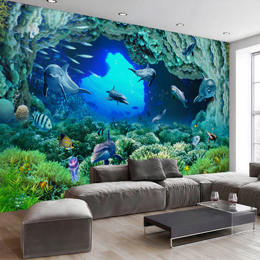 Papier peint Delfini dans une grotte sous l'eau (article a90172 ) de la catégorie Papier peint Monde sous-marin