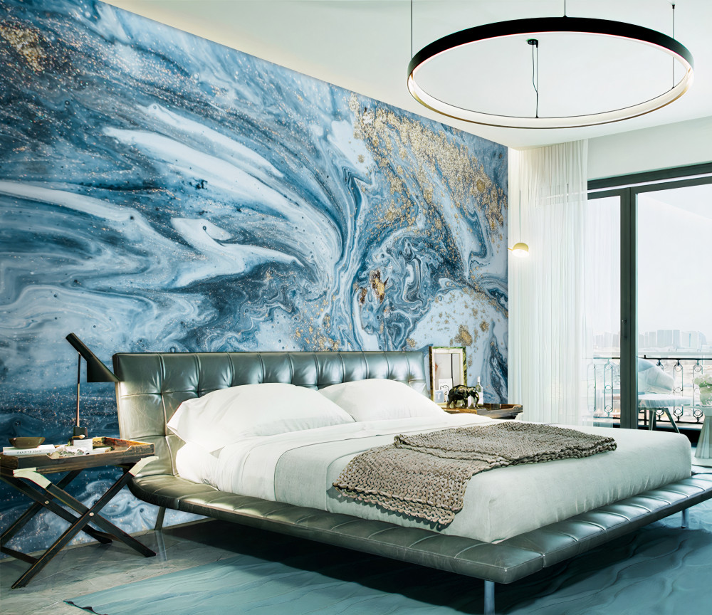 Papier peint Liquide bleu turquoise (article a93402 ) de la catégorie Papier peint Marbre