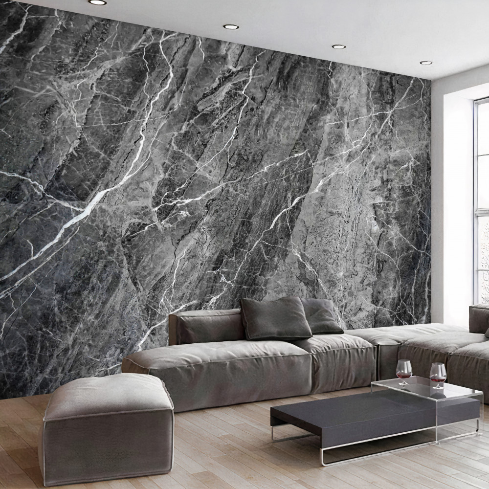 Papier peint Marbre gris avec des fissures blanches (article a91620 ) de la catégorie Papier peint Marbre