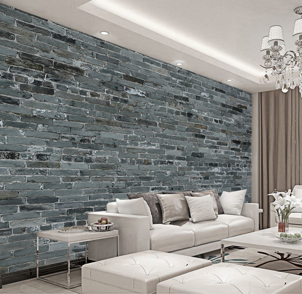 Papier peint mur gris foncé en briques
