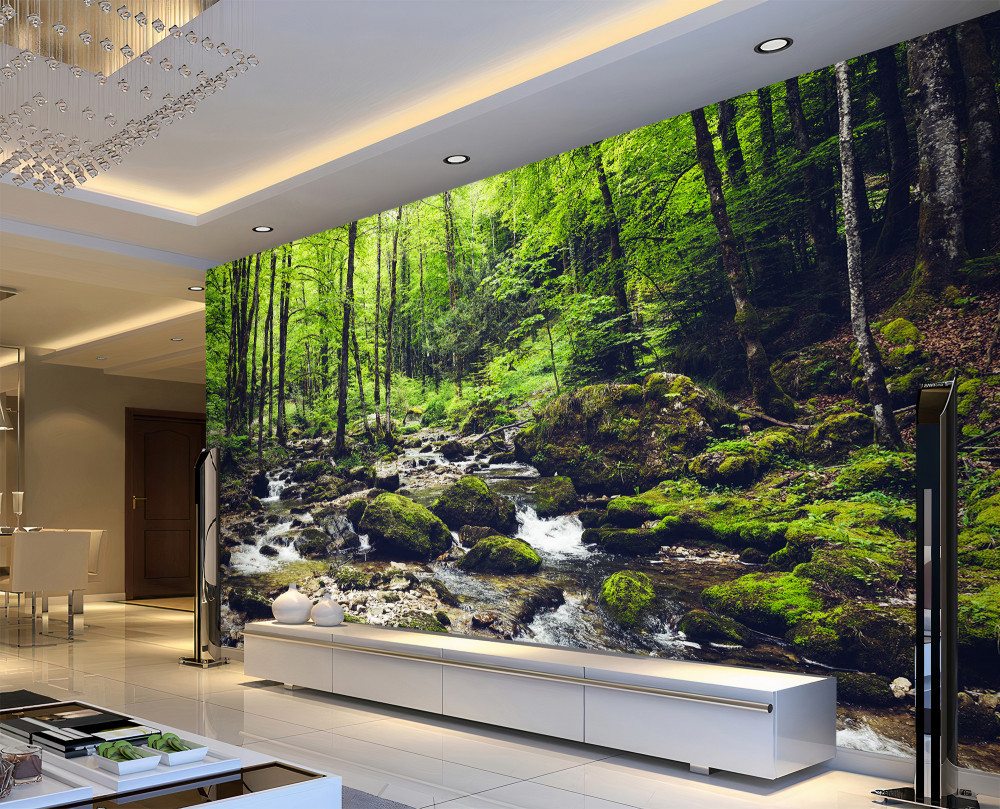 Papier peint cascade de montagne à l'intérieur d'une forêt verte (article a88425 ) de la catégorie Papier peint Forêt