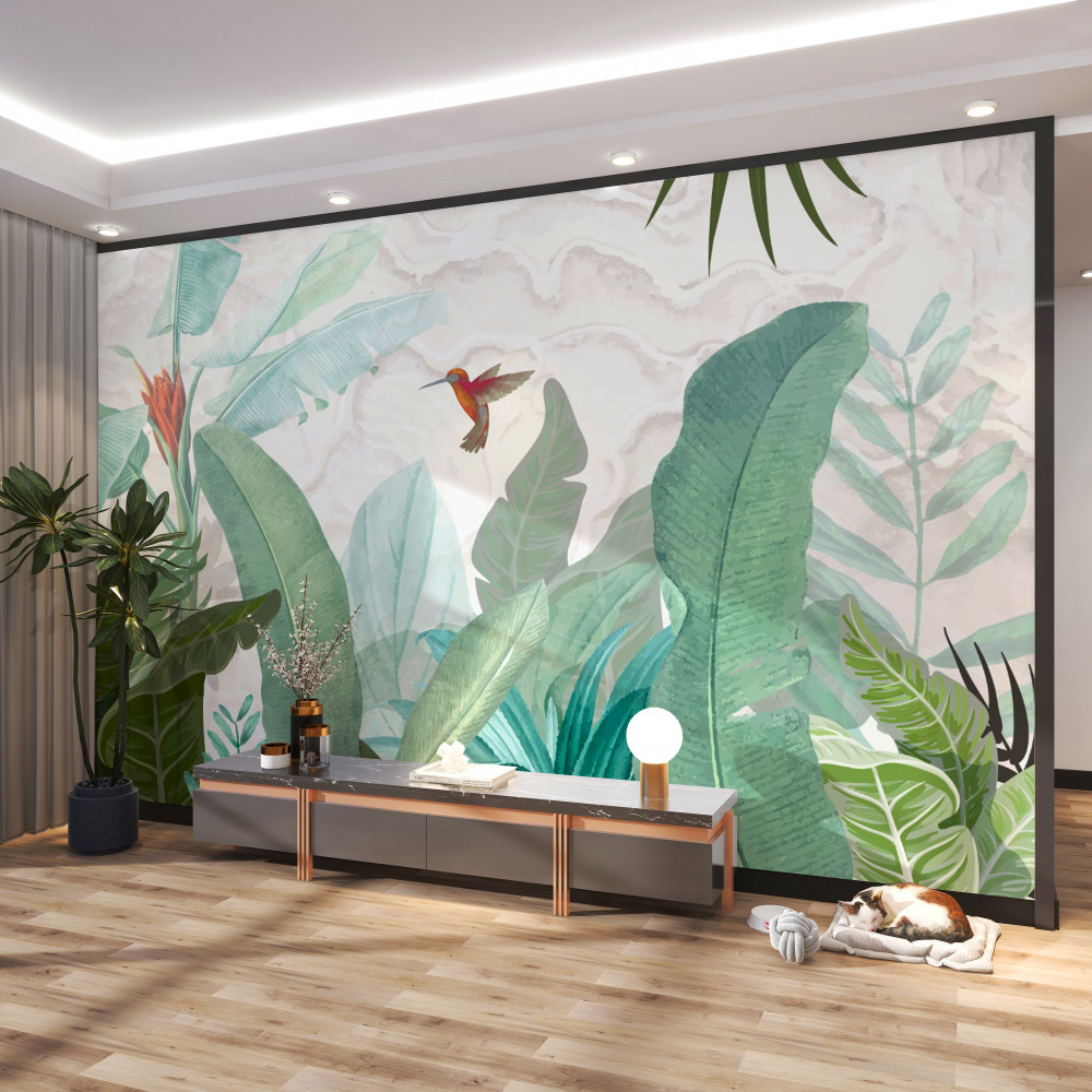 Papier peint Colibrier à la recherche de nectar (article a92563 ) de la catégorie Papier peint Feuilles