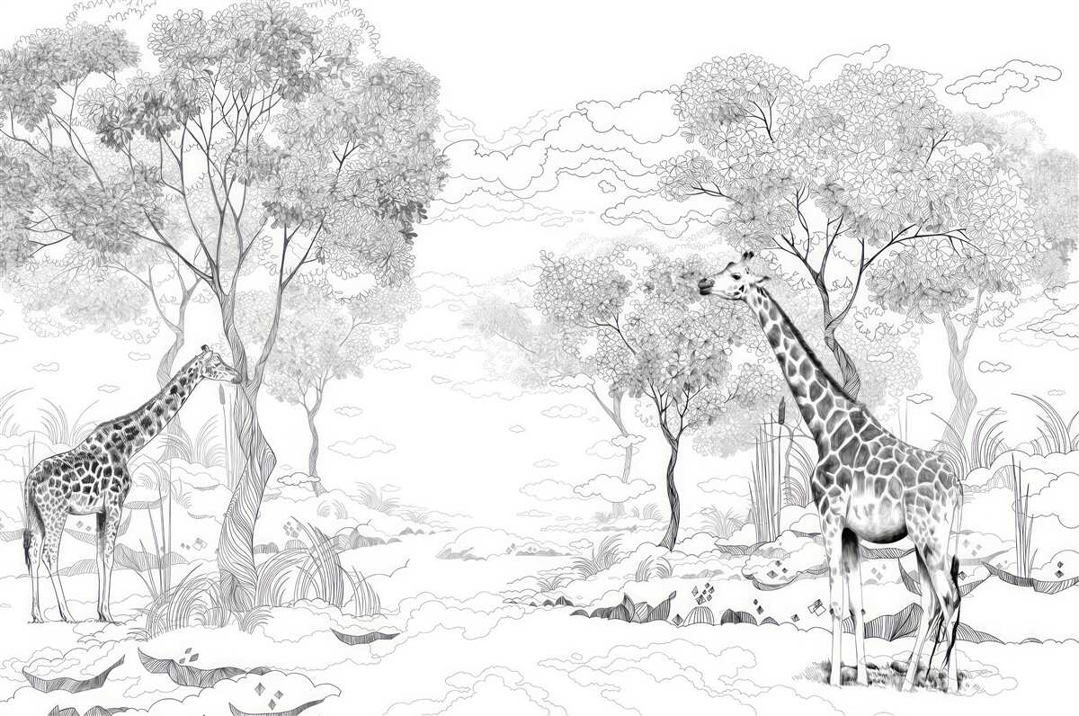 Papier peint Deux girafes près des arbres (article a97987 ) de la catégorie Papier peint Nature