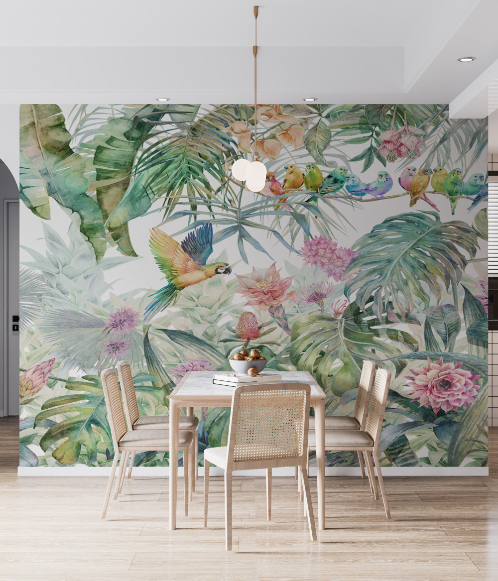 Papier peint Famille de perroquet dans la jungle (article a89532 ) de la catégorie Papier peint Feuilles