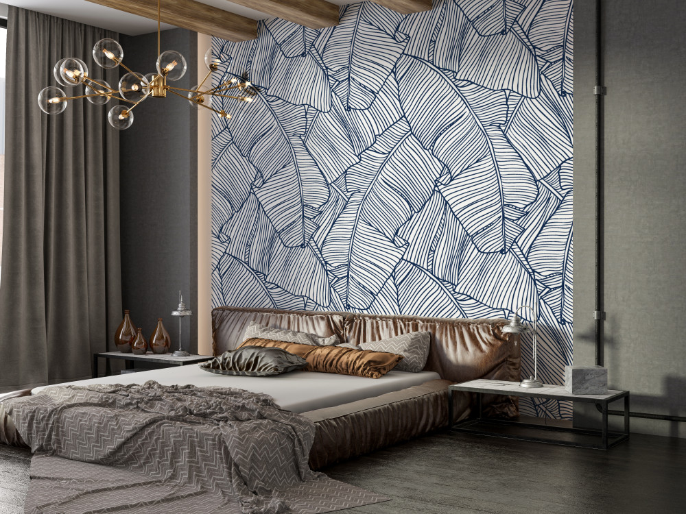 Papier peint Illustration des feuilles bleues tropicales (article a91515 ) de la catégorie Papier peint Feuilles