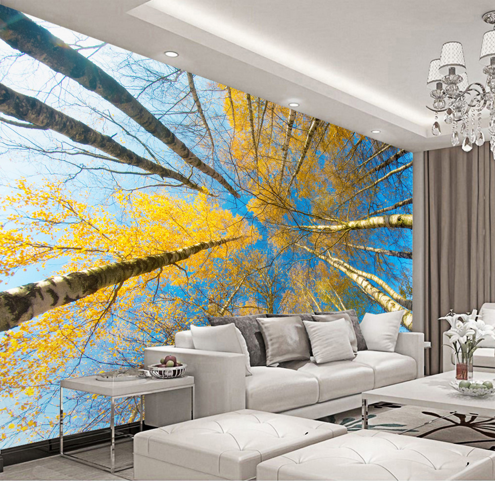 Papier peint Les arbres hauts couronnes de couleurs jaunes (article a88400 ) de la catégorie Papier peint Forêt