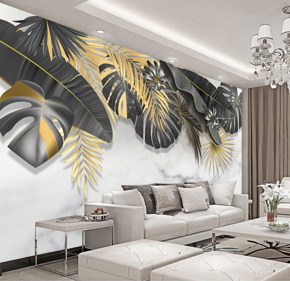 Papier peint Nere et Golden Tropical Jungle Feuilles (article a94394 ) de la catégorie Papier peint Nature