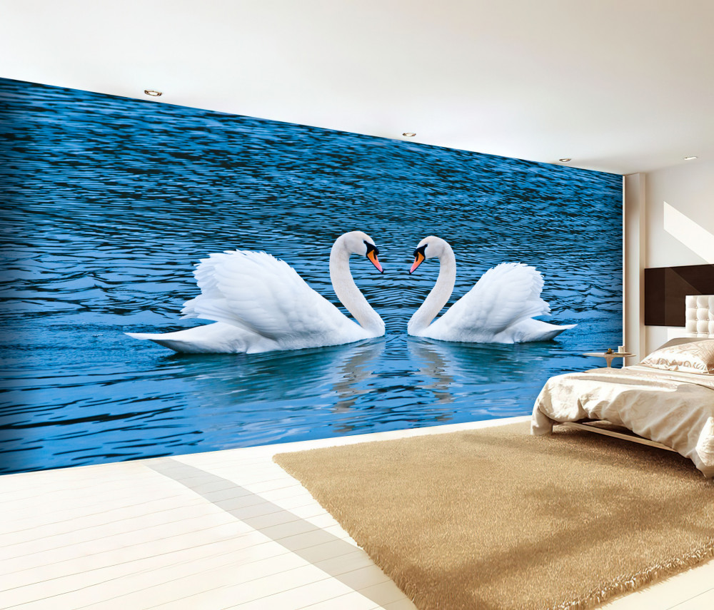 Papier peint Buds d'orchidées blanches près de l'eau avec Cigni