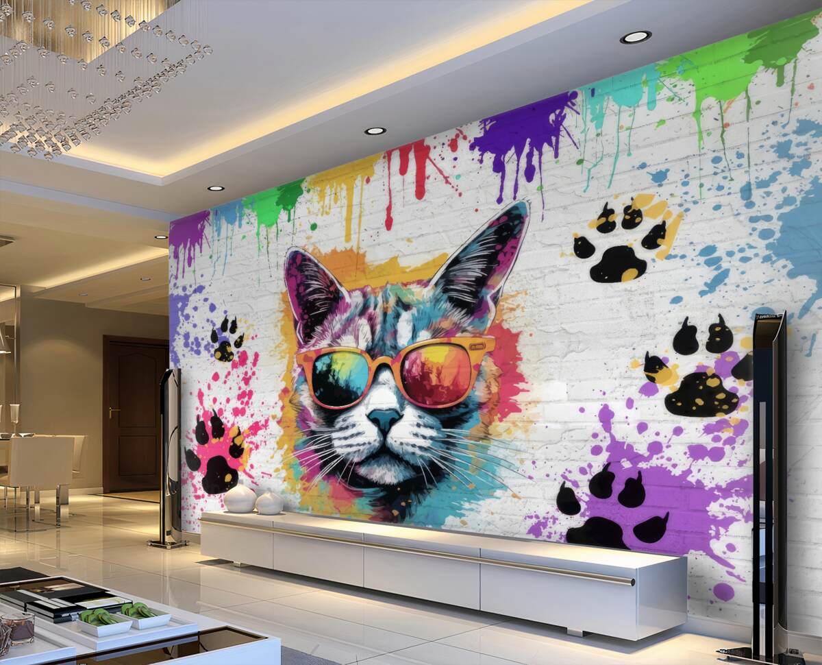 Papier peint Chat avec des lunettes (article a97953 ) de la catégorie Papier peint Pop art