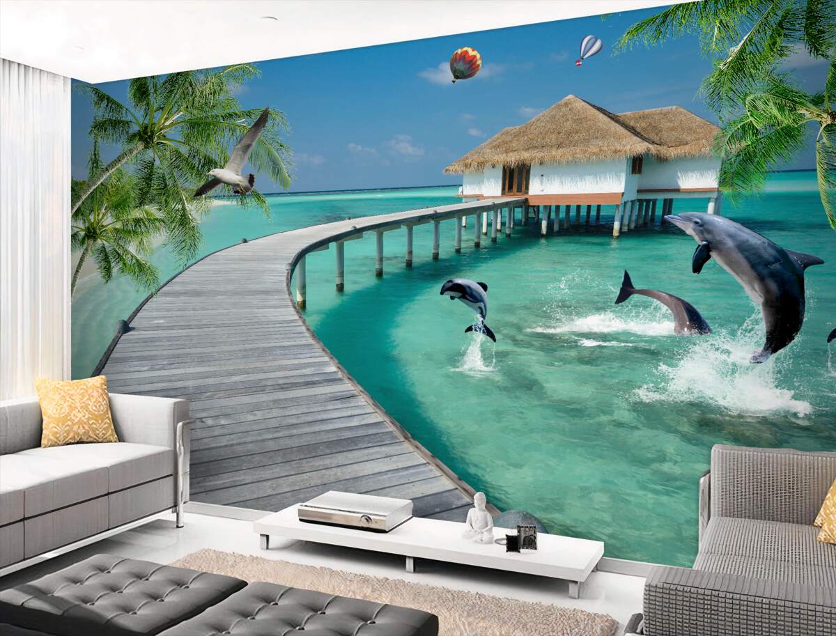 Papier peint Bridge en bois sur les eaux turquoise (article a95024 ) de la catégorie Papier peint Populaire