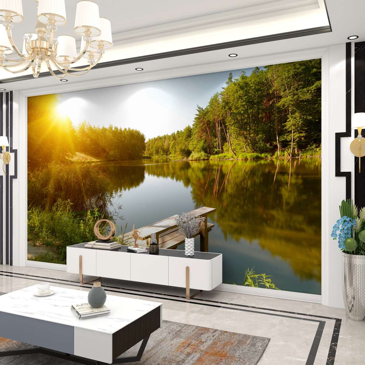 Papier peint Dawn vif dans la forêt près de l'eau (article a95340 ) de la catégorie Papier peint Populaire