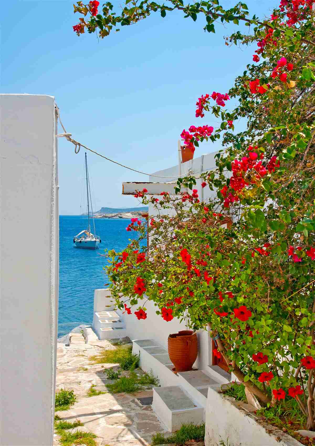 Papier peint Granate Couleur rouge sur les murs des maisons blanches