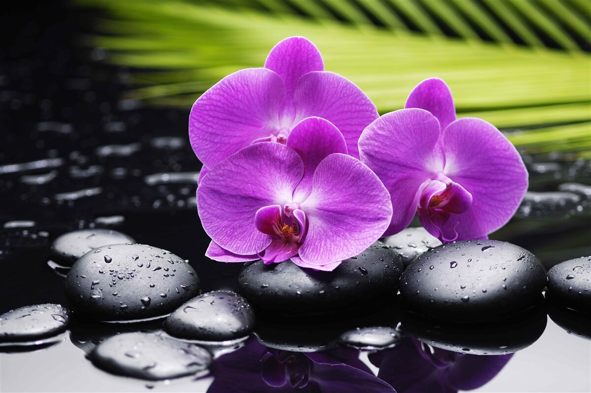 Papier peint orchidée violette sur une pierre noire près de l'eau (article a95396 ) de la catégorie Papier peint Populaire