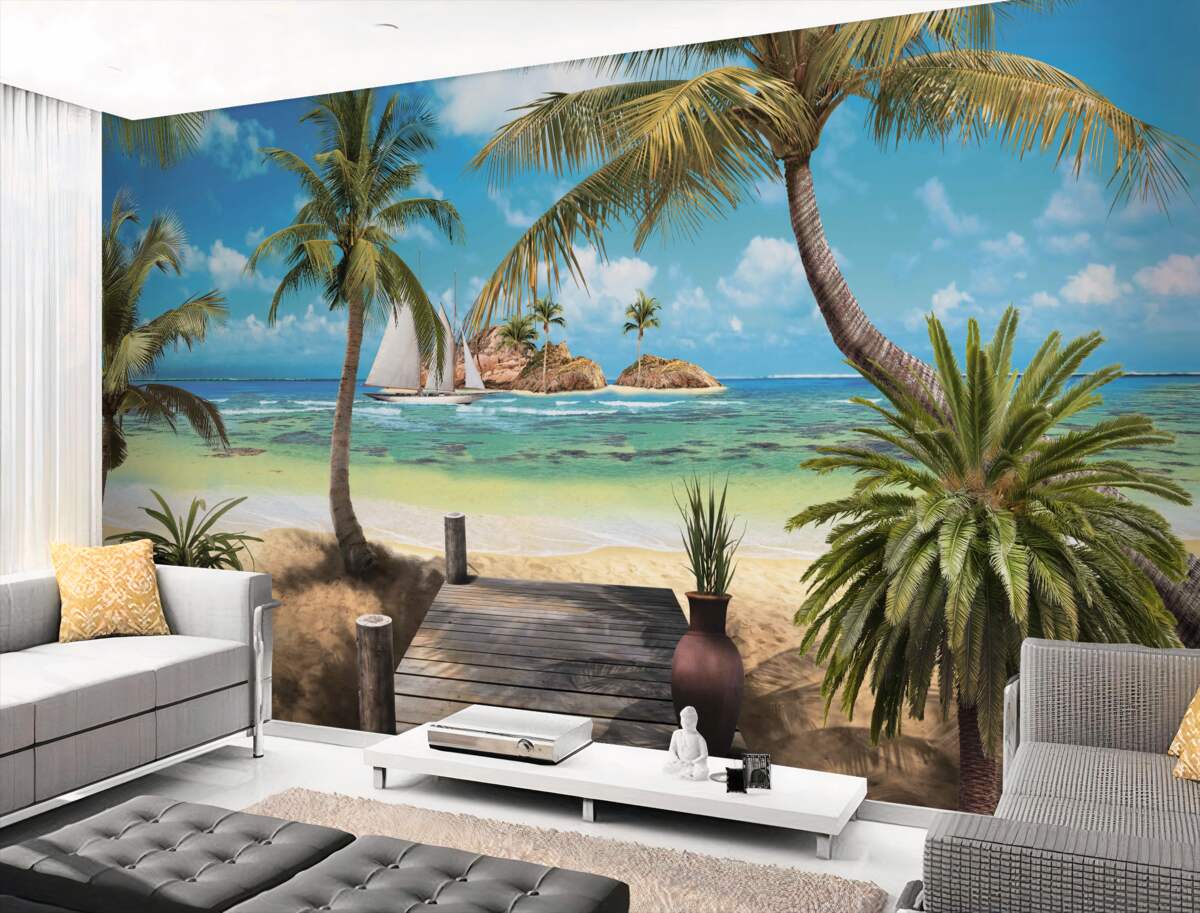Papier peint Pont en bois vers la côte (article a96113 ) de la catégorie Papier peint Populaire