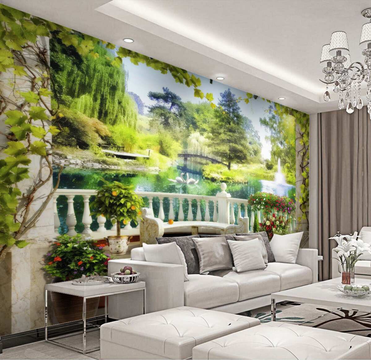 Papier peint Vue depuis le balcon de la cascade et des cygnes (article a97228 ) de la catégorie Papier peint Populaire