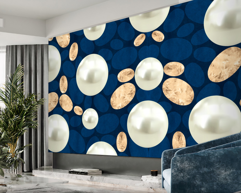 Papier peint branches dorées de fleurs et de cygnes blancs