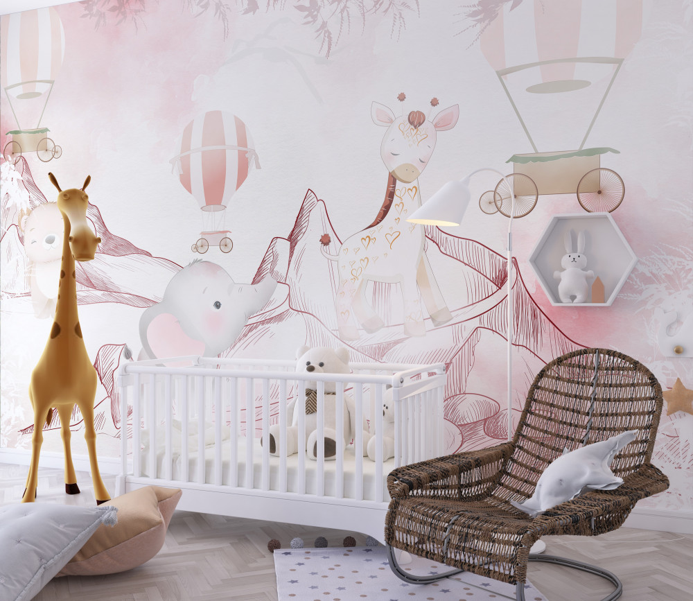 Papier peint Animaux roses pâles et ballons (article a93913 ) de la catégorie Papier peint Pour un garçon