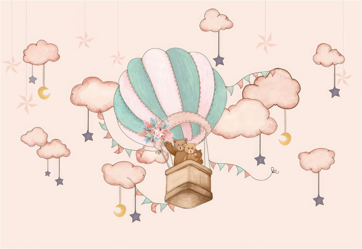 Papier peint Famille d'ours volant en montgolfière (article a97303 ) de la catégorie Papier peint Pour les enfants