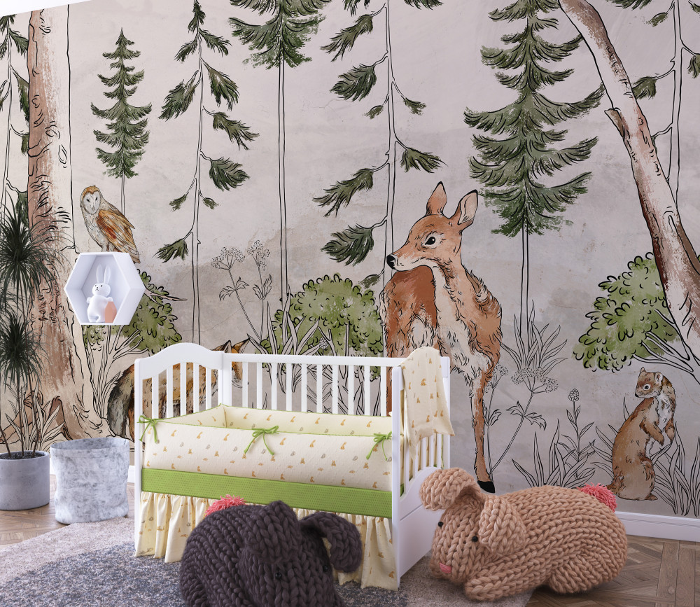 Papier peint Marche animale dans la forêt (article a93909 ) de la catégorie Papier peint Pour un garçon