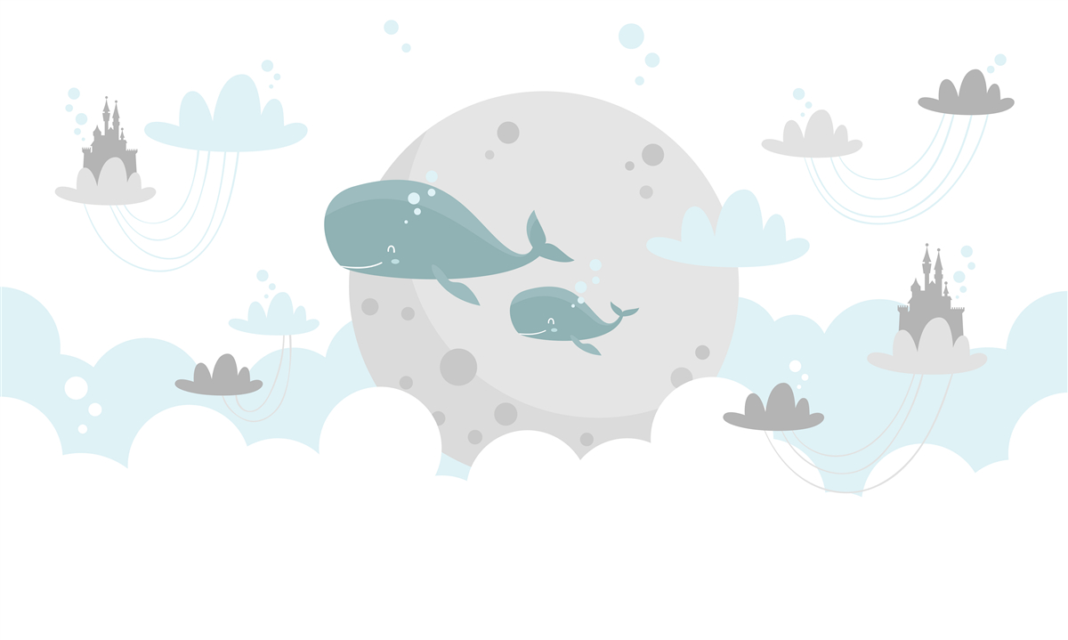 Papier peint Une famille de baleines vole vers les nuages (article a98037 ) de la catégorie Papier peint Pour les enfants