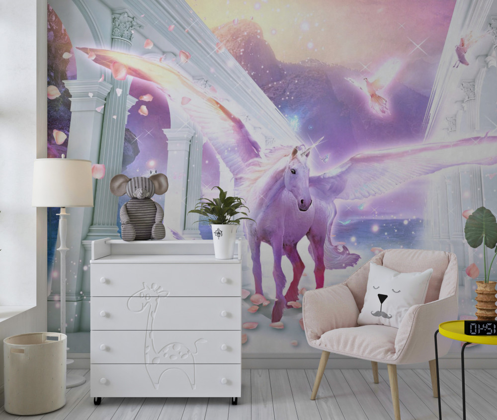 Papier peint Flying Fantasy Unicorn (article a89774 ) de la catégorie Papier peint Pour les enfants