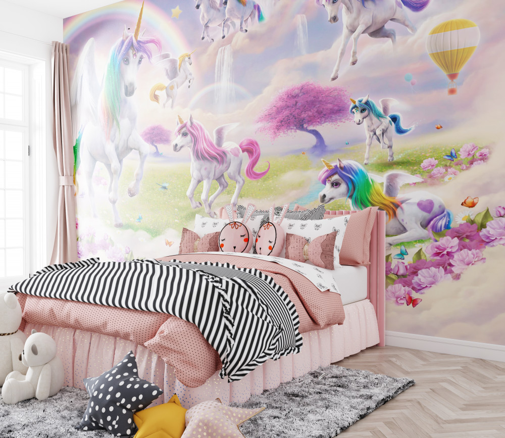 Papier peint licornes magiques dans la clairière (article a89875 ) de la catégorie Papier peint Pour les filles