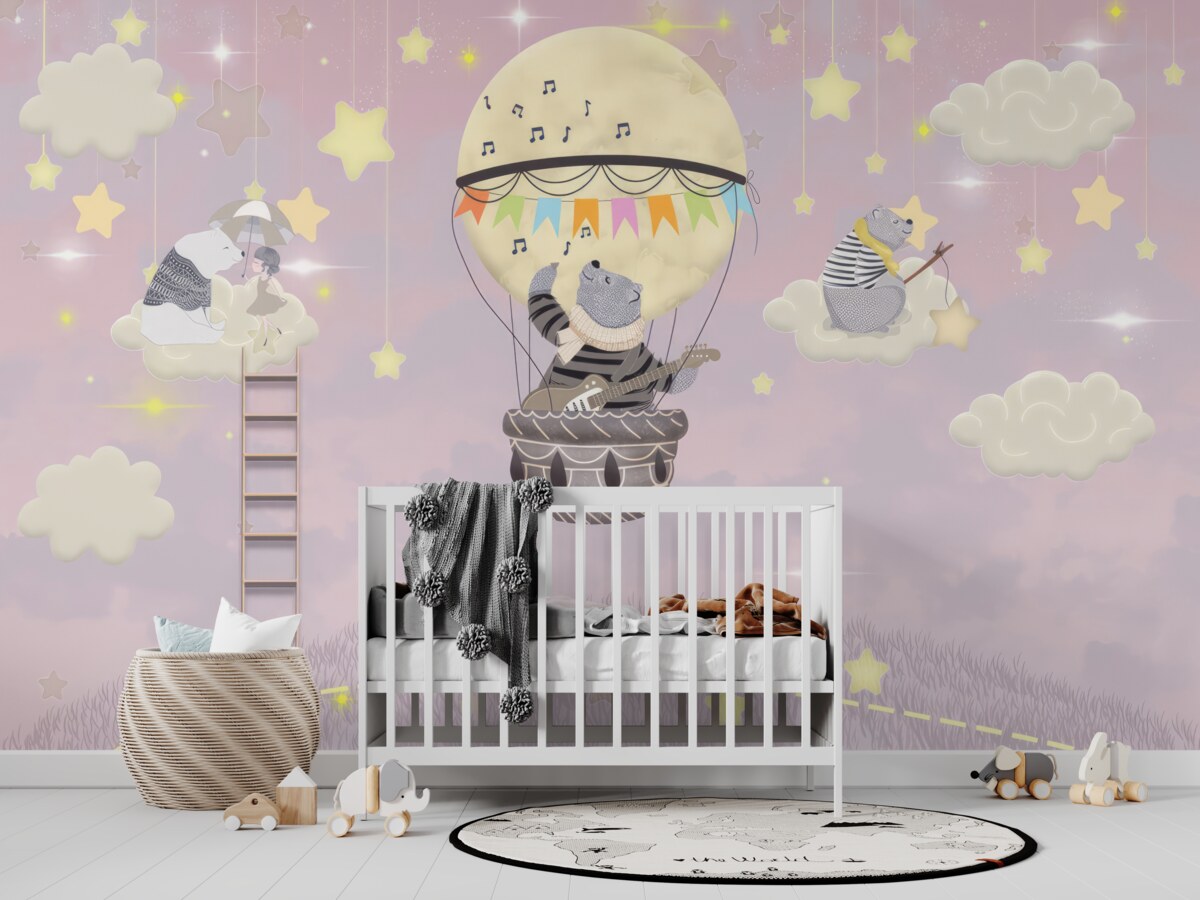 Papier peint Filles sur un arc-en-ciel dans les nuages
