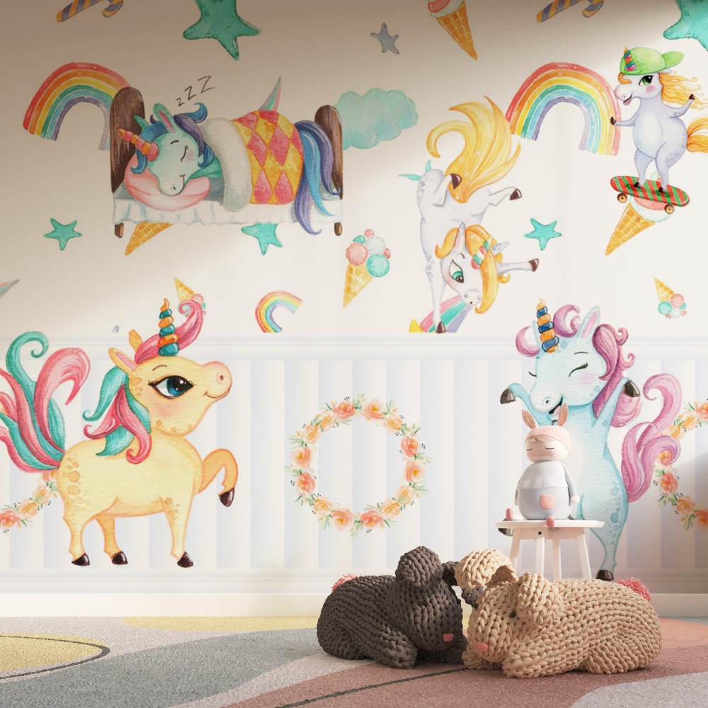 Papier peint Des lapins blancs sautant sur les montagnes peintes