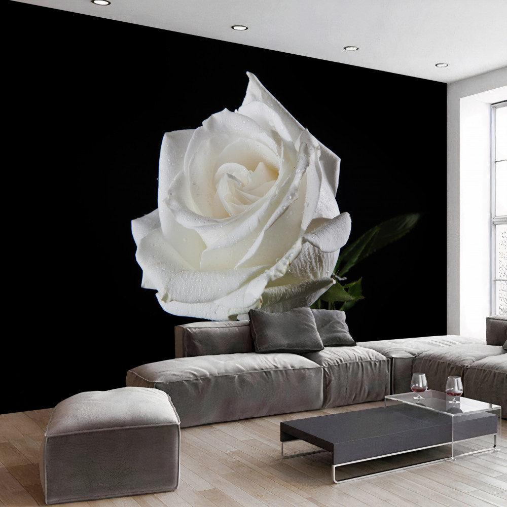 Papier peint Lumière bleue qui brille à travers une rose blanche