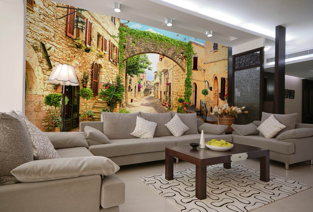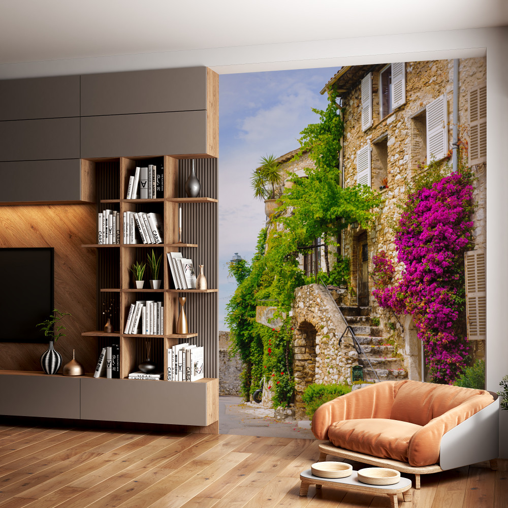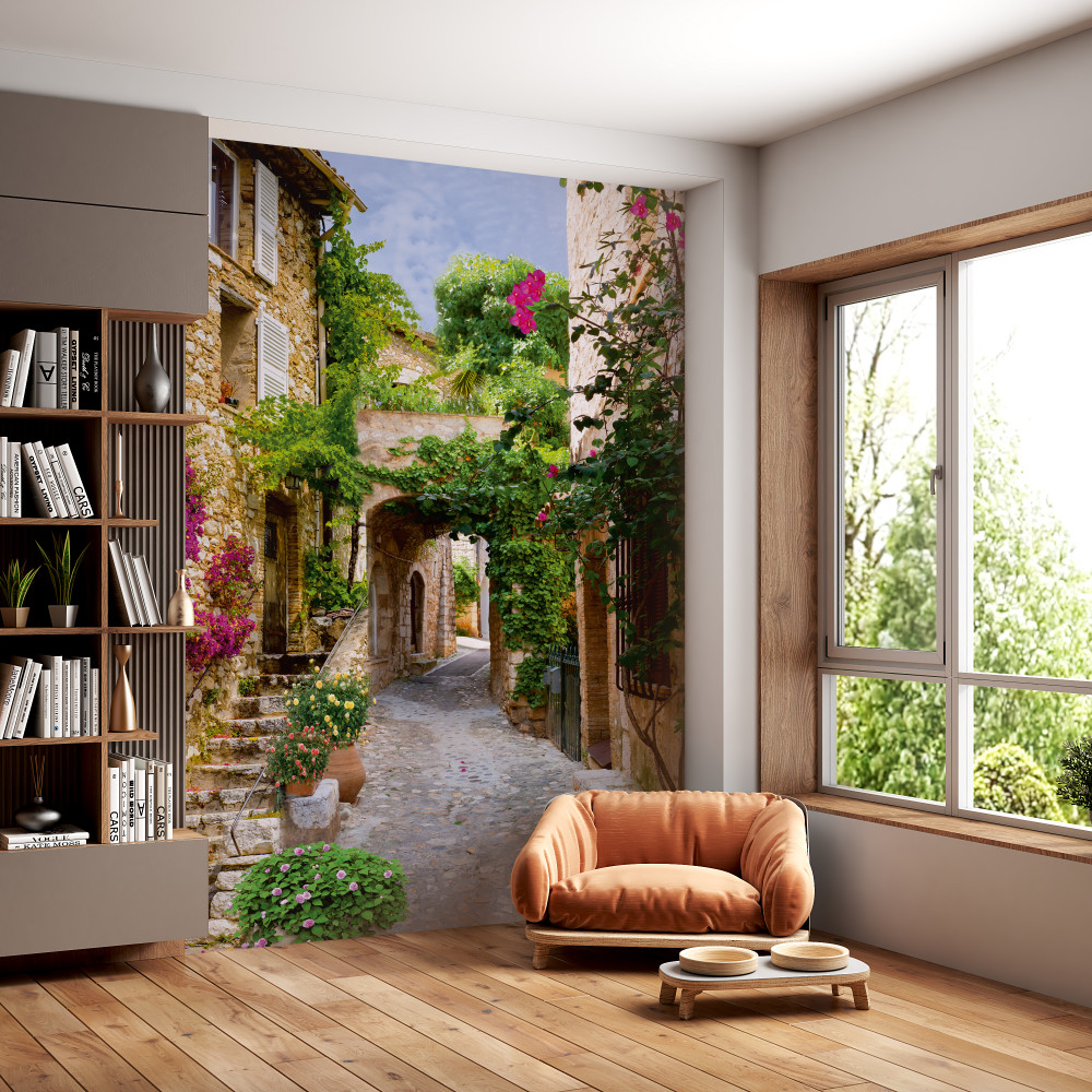 Papier peint Route en pierre de la vieille ville dans la verdure
