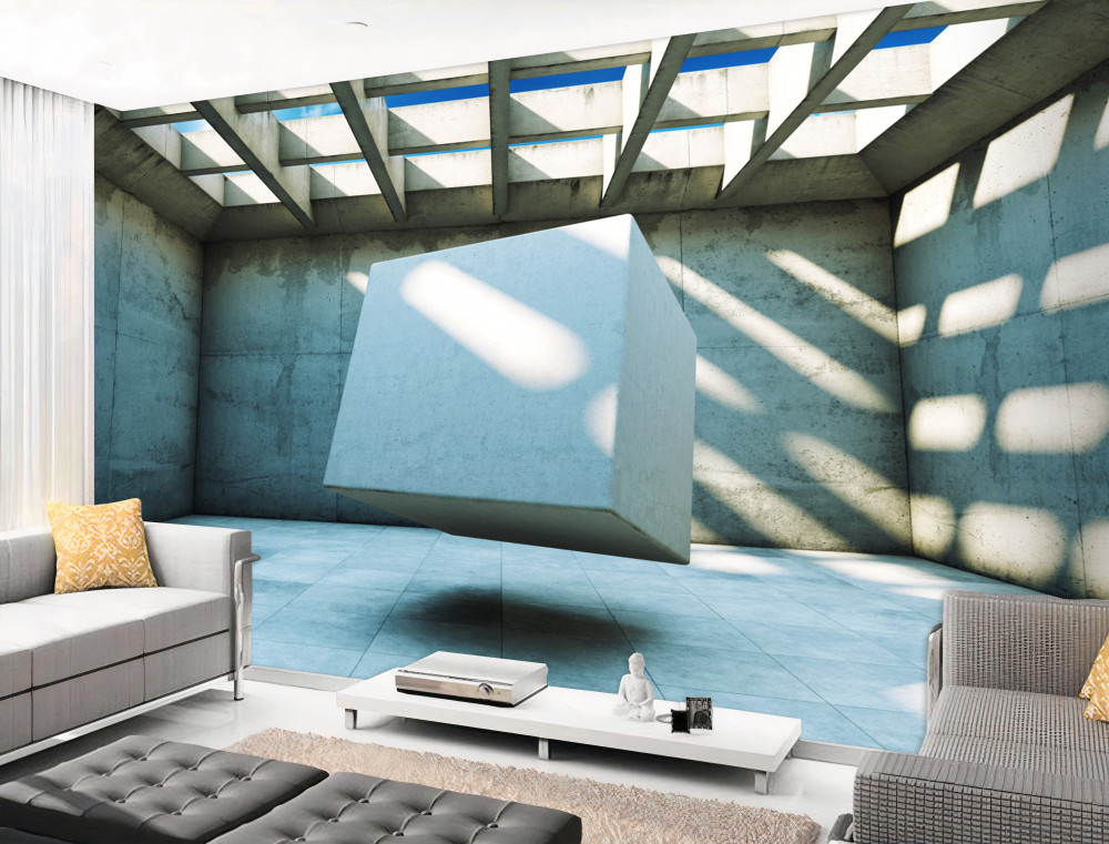 Papier peint Cube 3D flottant dans une pièce lumineuse