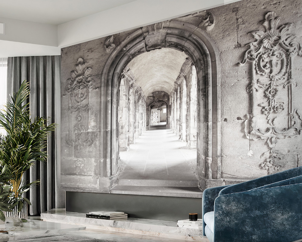 Papier peint Arches en béton avec vue sur la montagne et le ciel