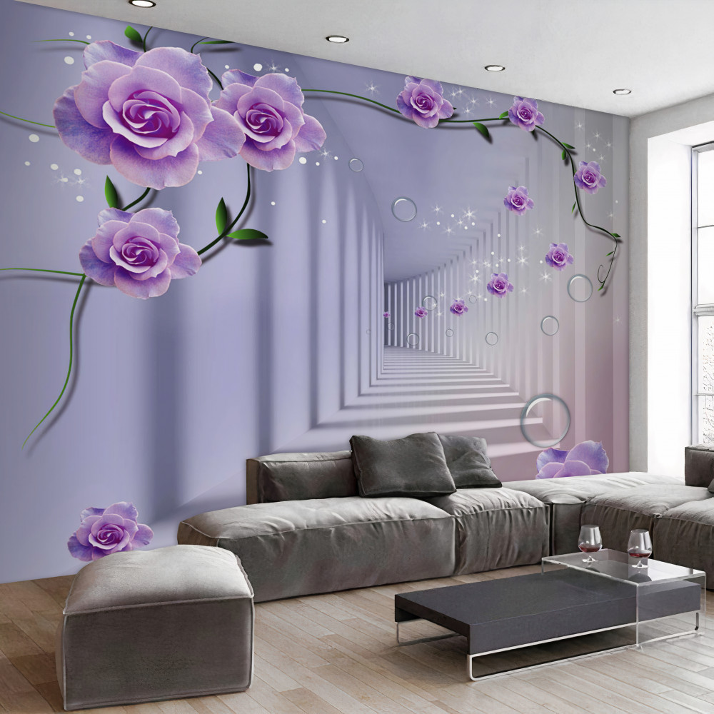 Papier peint Les papillons volent des fleurs fraîches dans le tunnel
