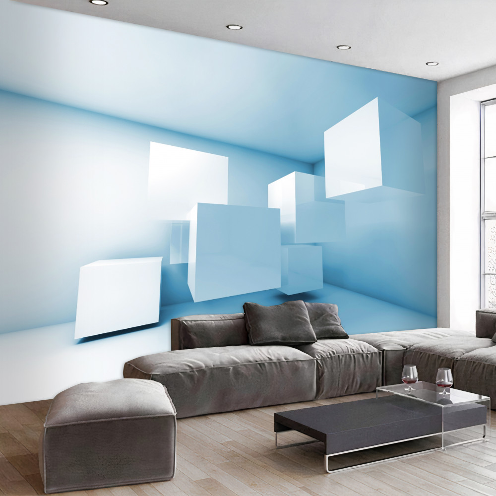 Papier peint Des boules blanches flottent dans le tunnel bleu qui s'éloigne