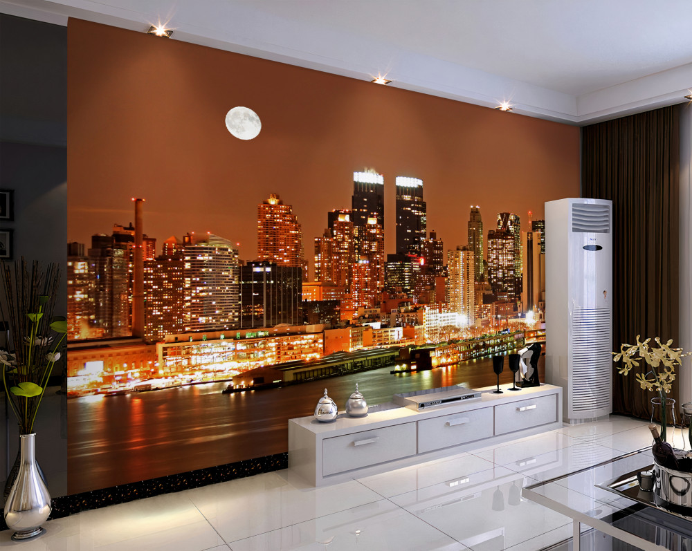 Papier peint pleine lune sur la ville (article a90711 ) de la catégorie Papier peint Ville et villes