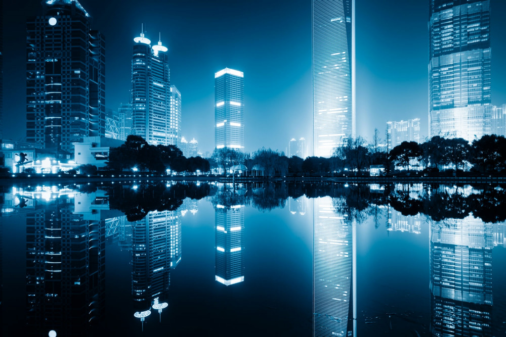Papier peint Reflet de la ville de la nuit (article a90750 ) de la catégorie Papier peint Ville et villes